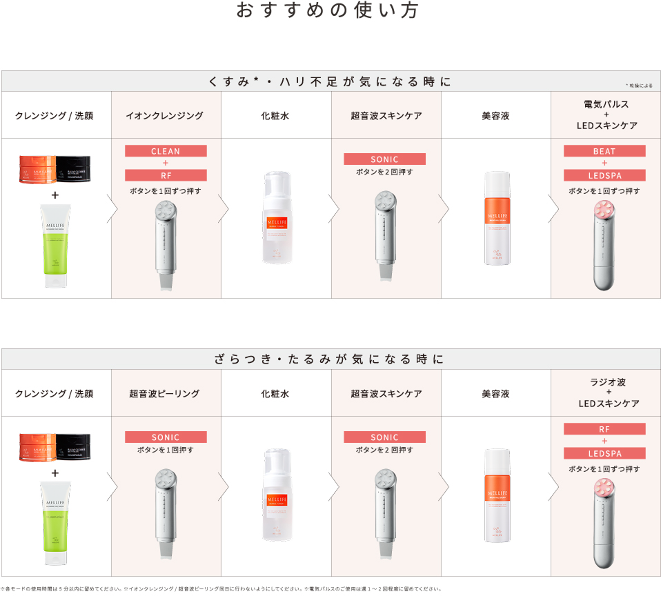- ※イオンクレンジング/超音波ピーリングは同日に行わないようにしてください。